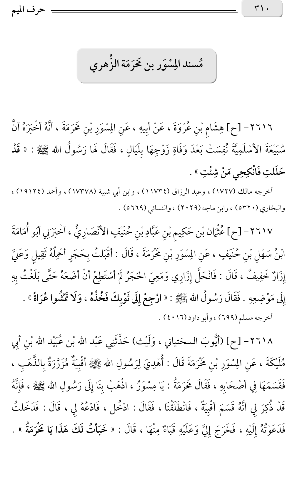 مُسند المِسْوَر بن مَخرَمَة الزُّهريّ