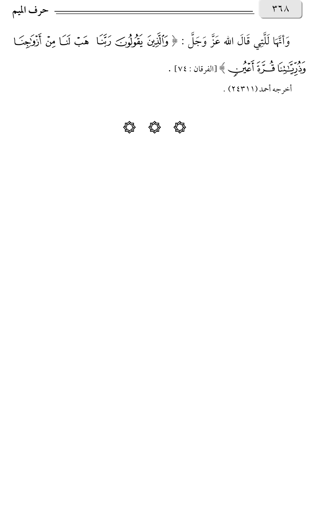 وَأنَّهَا لَلَّتِي قَالَ الله عَزَّ وَجَلَّ {وَالَّذِينَ يَقُولُونَ رَبَّنَا هَبْ لَنَا مِنْ أَزْوَاجِنَا وَذُرِّيَّاتِنَا قُرَّةَ أَعْيُنٍ} [الفرقان: ٧٤].