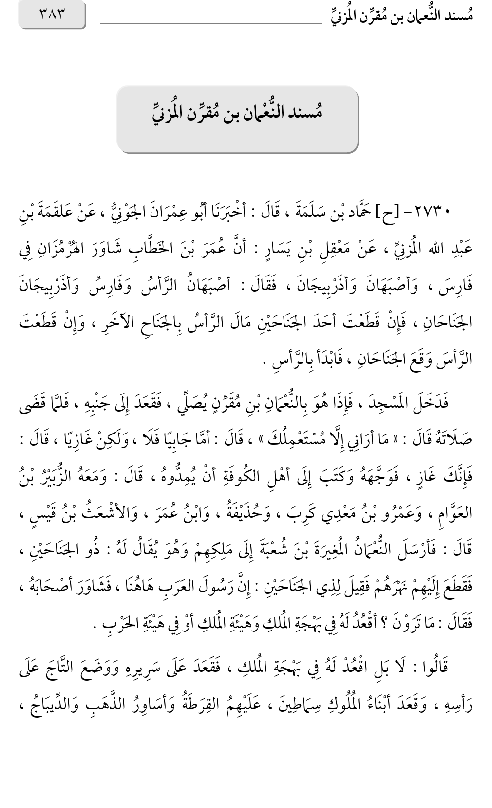 مُسند النُّعمان بن مُقرِّن المُزنيِّ