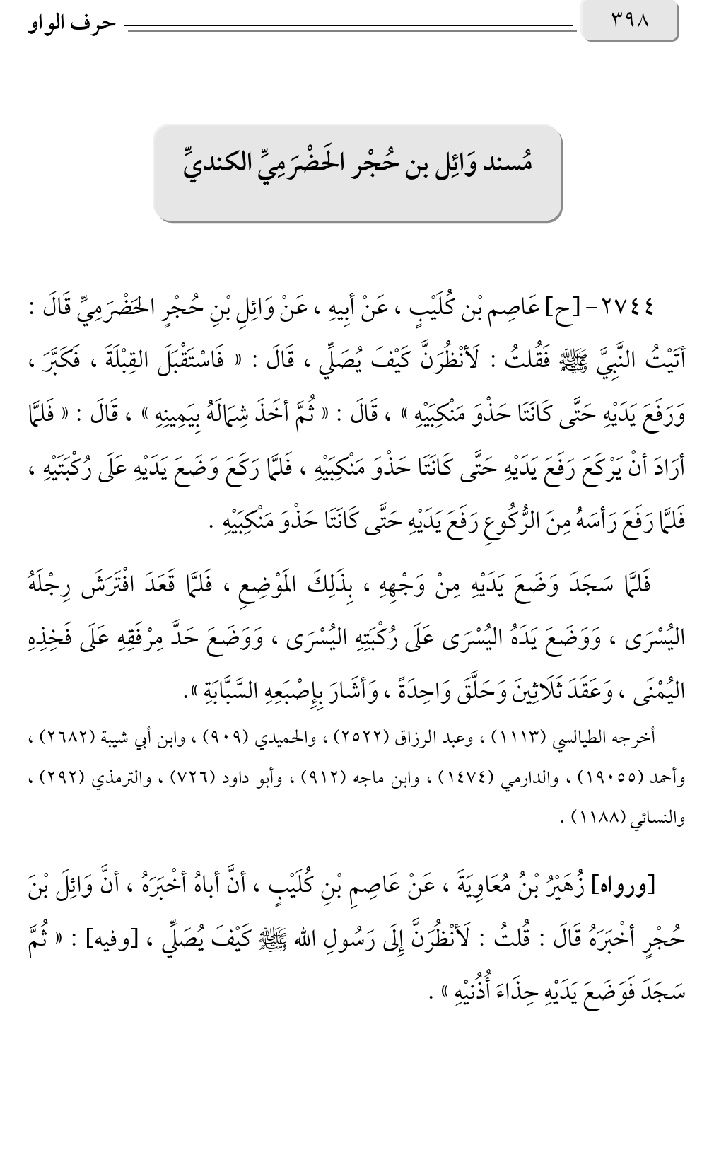 مُسند وَائِل بن حُجْر الحَضْرَمِيِّ الكنديِّ
