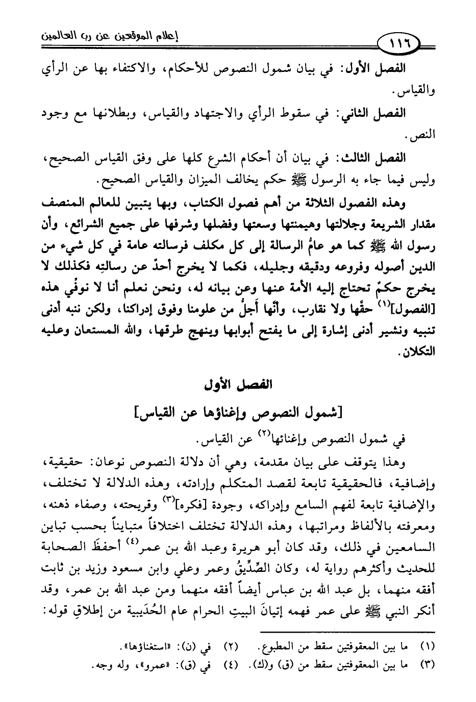الفصل الأول [شمول النصوص وإغناؤها عن القياس]