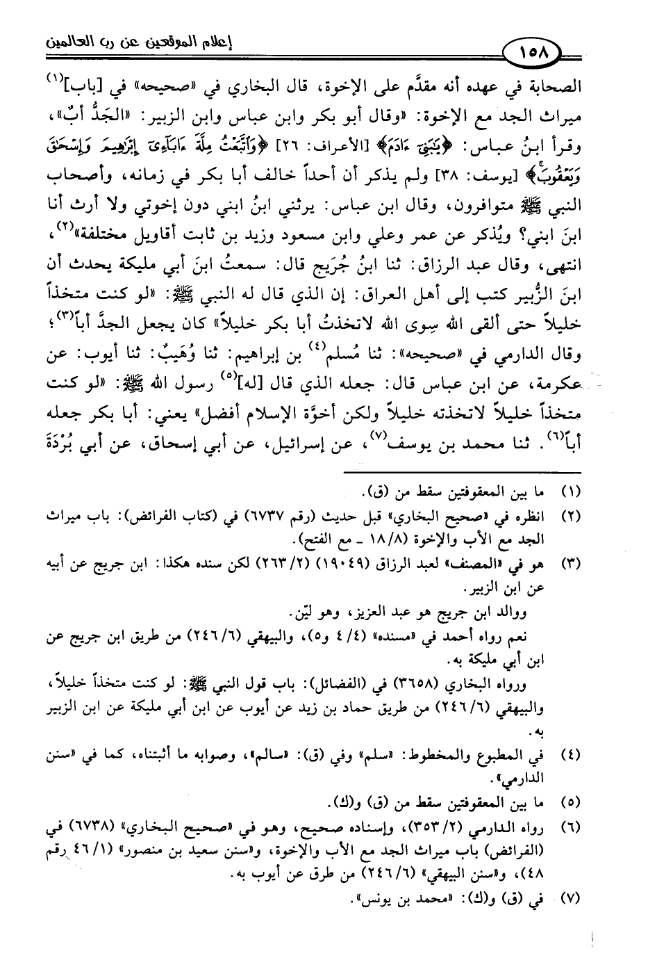 (٢) انظره في "صحيح البخاري" قبل حديث (رقم ٦٧٣٧) في (كتاب الفرائض): باب ميراث الجد مع الأب والأخوة (٨/ ١٨ - مع الفتح).