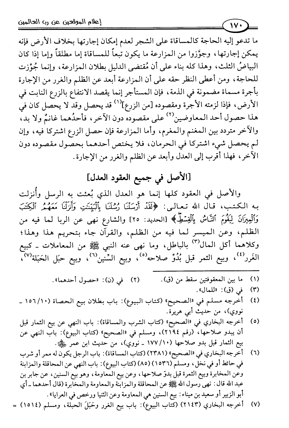 والأصل في العقود كلها إنما هو العدل الذي بُعثت به الرسل وأُنزلت به الكتب، قال اللَّه تعالى: {لَقَدْ أَرْسَلْنَا رُسُلَنَا بِالْبَيِّنَاتِ وَأَنْزَلْنَا مَعَهُمُ الْكِتَابَ وَالْمِيزَانَ لِيَقُومَ النَّاسُ بِالْقِسْطِ} [الحديد: ٢٥] والشارع نهى عن الربا لما فيه من الظلم، وعن الميسر لما فيه من الظلم، والقرآن جاء بتحريم هذا وهذا، وكلاهما أكل المال (٣) بالباطل، وما نهى عنه النبي -صلى اللَّه عليه وسلم- من المعاملات -كبيع الغَرر (٤)، وبيع الثمر قبل بُدُوِّ صلاحه (٥)، وبيع السِّنين (٦)، وبيع حبَل الحَبَلة (٧)،