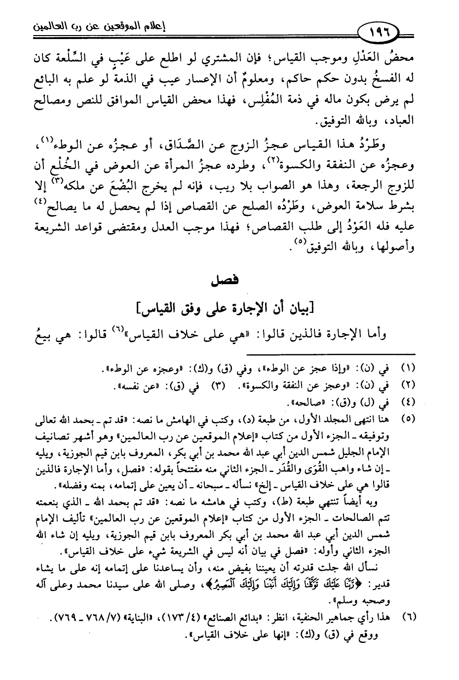 (٥) هنا انتهى المجلد الأول، من طبعة (د)، وكتب في الهامش ما نصه: "قد تم -بحمد اللَّه تعالى وتوفيقه- الجزء الأول من كتاب "إعلام الموقعين عن رب العالمين" وهو أشهر تصانيف الإمام الجليل شمس الدين أبي عبد اللَّه محمد بن أبي بكر، المعروف بابن قيم الجوزية، ويليه -إن شاء واهب القُوَى والقُدَر- الجزء الثاني منه مفتتحًا بقوله: "فصل، وأما الإجارة فالذين قالوا هي على خلاف القياس- إلخ" نسأله -سبحانه- أن يعين على إتمامه، بمنه وفضله".