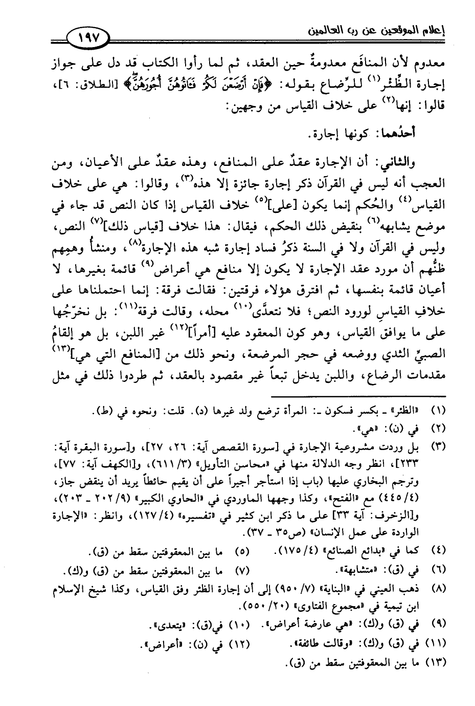 معدوم لأن المنافَع معدومةٌ حين العقد، ثم لما رأوا الكتاب قد دل على جواز إجارة الظِّئْر (١) للرِّضاع بقوله: {فَإِنْ أَرْضَعْنَ لَكُمْ فَآتُوهُنَّ أُجُورَهُنَّ} [الطلاق: ٦]، قالوا: إنها (٢) على خلاف القياس من وجهين: