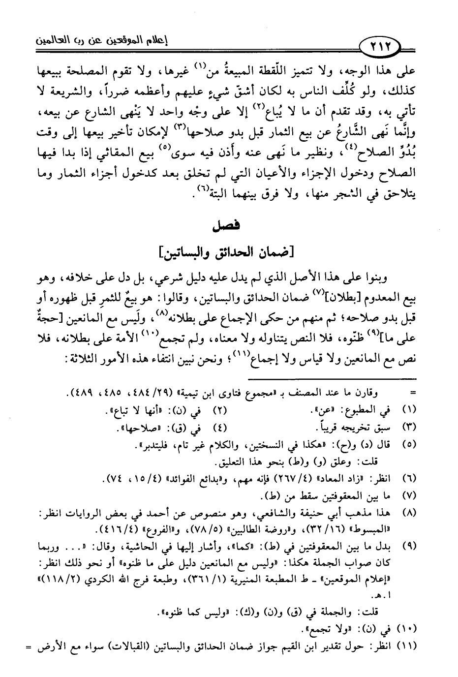(١١) انظر: حول تقدير ابن القيم جواز ضمان الحدائق والبساتين (القبالات) سواء مع الأرض =