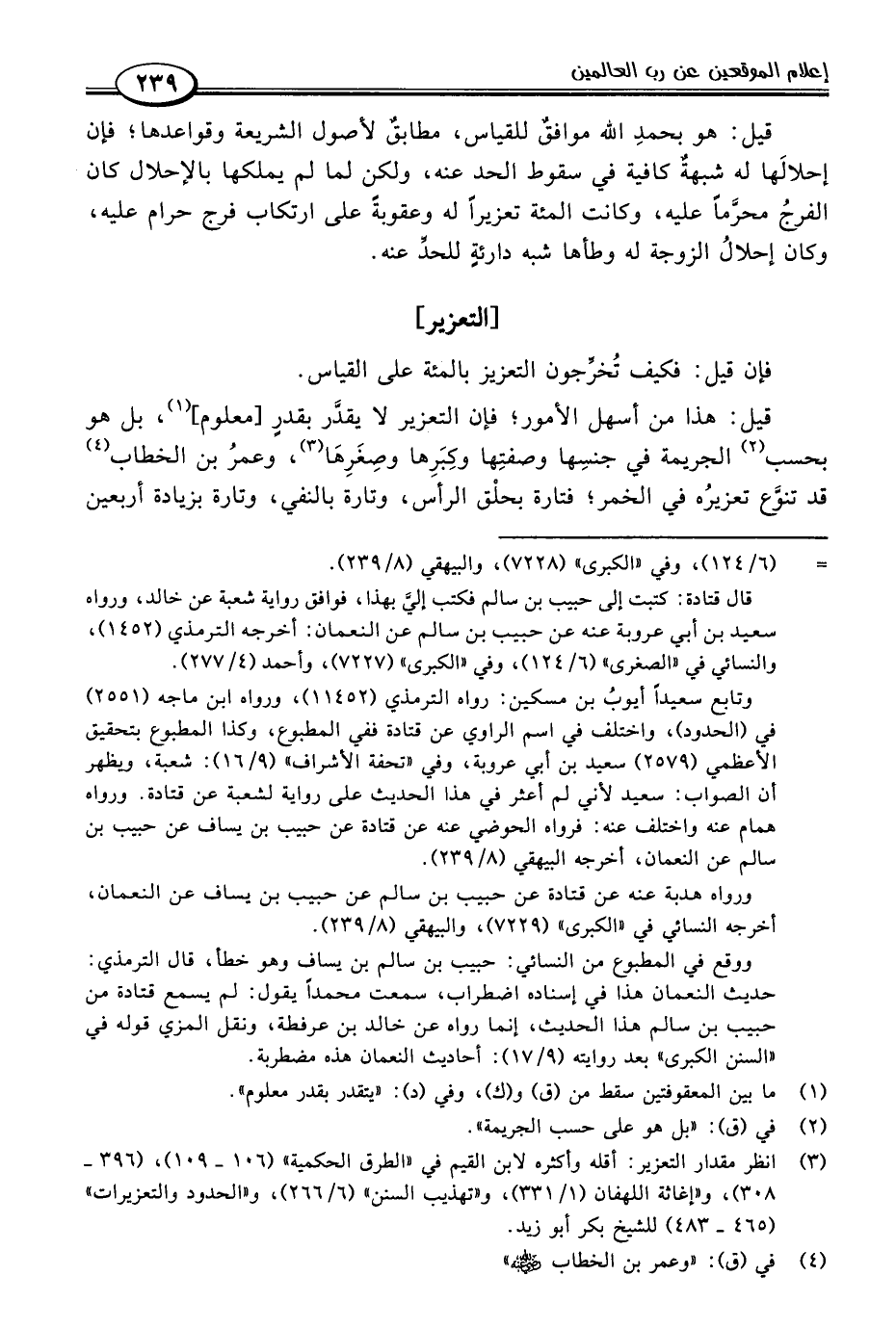 (٣) انظر مقدار التعزير: أقله وأكثره لابن القيم في "الطرق الحكمية" (١٠٦ - ١٠٩)، (٣٩٦ - ٣٠٨)، و"إغاثة اللهفان (١/ ٣٣١)، و"تهذيب السنن" (٦/ ٢٦٦)، و"الحدود والتعزيرات" (٤٦٥ - ٤٨٣) للشيخ بكر أبو زيد.