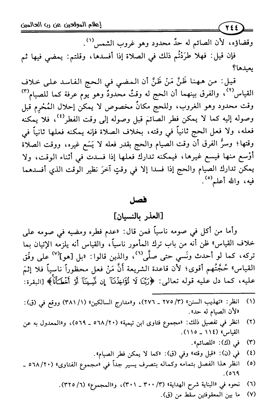 (١) انظر: "تهذيب السنن" (٣/ ٢٧٥ - ٢٧٦)، و"مدارج السالكين" (١/ ٣٨١) ووقع في (ق): "لأن الصيام له حد".