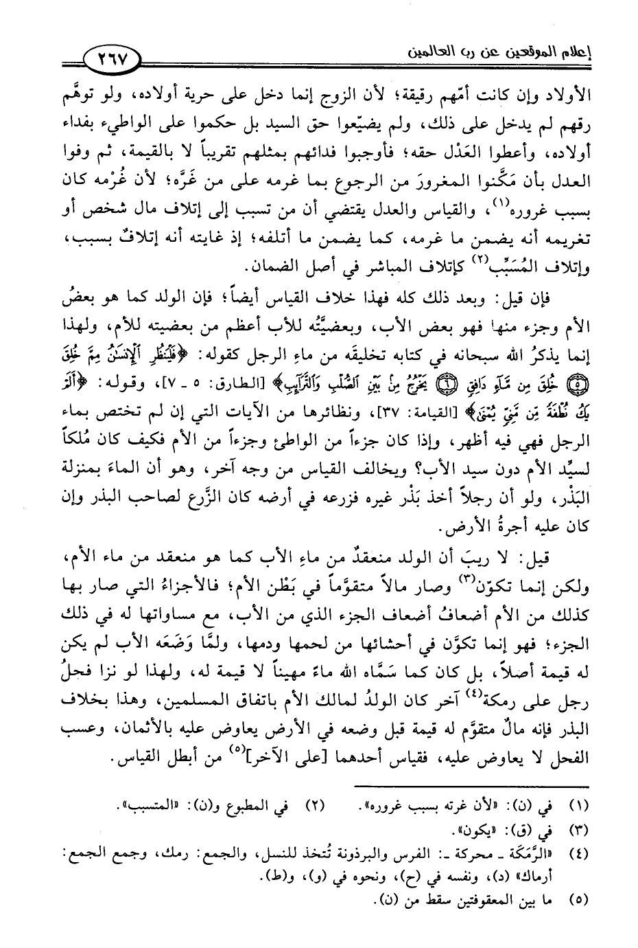 قيل: لا ريبَ أن الولد منعقدٌ من ماءِ الأب كما هو منعقد من ماء الأم، ولكن إنما تكوّن (٣) وصار مالًا متقوَّمًا في بَطْن الأم؛ فالأجزاءُ التي صار بها كذلك من الأم أضعافُ أضعاف الجزء الذي من الأب، مع مساواتها له في ذلك الجزء؛ فهو إنما تكوَّن في أحشائها من لحمها ودمها, ولمَّا وَضَعَه الأب لم يكن له قيمة أصلًا، بل كان كما سَمَّاه اللَّه ماءً مهينًا لا قيمة له، ولهذا لو نزا فحلُ رجل على رمكة (٤) آخر كان الولدُ لمالك الأم باتفاق المسلمين، وهذا بخلاف البذر فإنه مالٌ متقوَّم له قيمة قبل وضعه في الأرض يعاوض عليه بالأثمان، وعسب الفحل لا يعاوض عليه، فقياس أحدهما [على الآخر] (٥) من أبطل القياس.