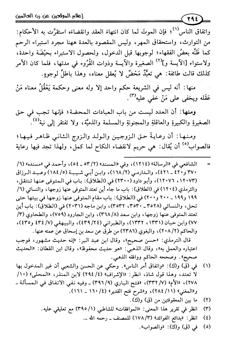 ومنها: أن رعايةَ حق الزوجين والولد والزوج الثاني ظاهر فيها؛ فالصواب (٥) أن يُقال: هي حريم لانقضاء النكاح لما كمل، ولهذا تجد فيها رعاية