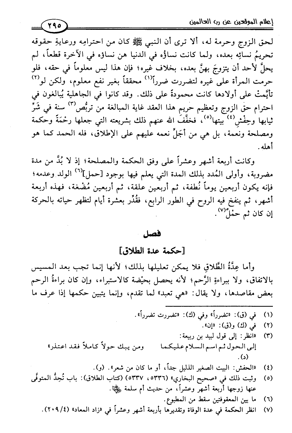 (٧) انظر الحكمة في عدة الوفاة وتقديرها بأربعة أشهر وعشرًا في "زاد المعاد" (٤/ ٢٠٩).