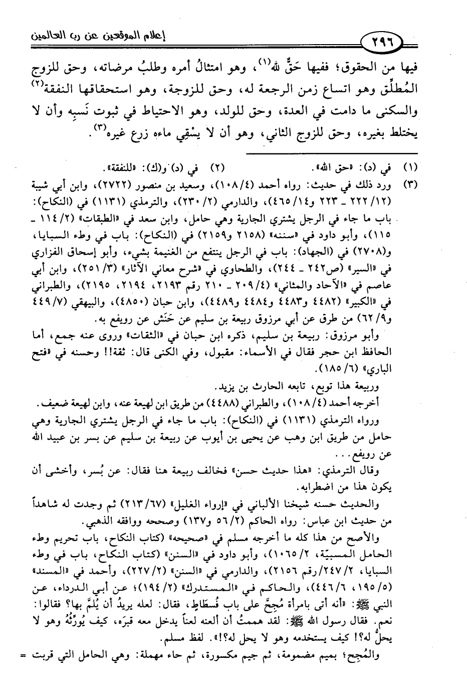 (٣) ورد ذلك في حديث: رواه أحمد (٤/ ١٠٨)، وسعيد بن منصور (٢٧٢٢)، وابن أبي شيبة (١٢/ ٢٢٢ - ٢٢٣ و ١٤/ ٤٦٥)، والدارمي (٢/ ٢٣٠)، والترمذي (١١٣١) في (النكاح): باب ما جاء في الرجل يشتري الجارية وهي حامل، وابن سعد في "الطبقات" (٢/ ١١٤ - ١١٥)، وأبو داود في "سننه" (٢١٥٨ و ٢١٥٩) في (النكاح): باب في وطء السبايا، و (٢٧٠٨) في (الجهاد): باب في الرجل ينتفع من الغنيمة بشيء، وأبو إسحاق الفزاري في "السير" (ص ٢٤٢ - ٢٤٤)، والطحاوي في "شرح معاني الآثار" (٣/ ٢٥١)، وابن أبي عاصم في "الآحاد والمثاني" (٤/ ٢٠٩ - ٢١٠ رقم ٢١٩٣، ٢١٩٤، ٢١٩٥)، والطبراني في "الكبير" (٤٤٨٢ و ٤٤٨٣ و ٤٤٨٤ و ٤٤٨٩)، وابن حبان (٤٨٥٠)، والبيهقي (٧/ ٤٤٩ و ٩/ ٦٢) من طرق عن أبي مرزوق ربيعة بن سليم عن حَنَش عن رويفع به.