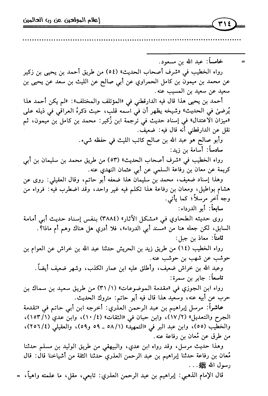 عاشرًا: مرسل إبراهيم بن عبد الرحمن العذري: أخرجه ابن أبي حاتم في "تقدمة الجرح والتعديل" (٢/ ١٧)، وابن حبان في "الثقات" (٤/ ١٠)، وابن عدي (١/ ١٥٣)، والخطيب (٥٥)، وابن عبد البر في "التمهيد" (١/ ٥٨ - ٥٩ و ٥٩)، والعقيلي (٤/ ٢٥٦)، من طرق عن مُعان بن رفاعة عنه.