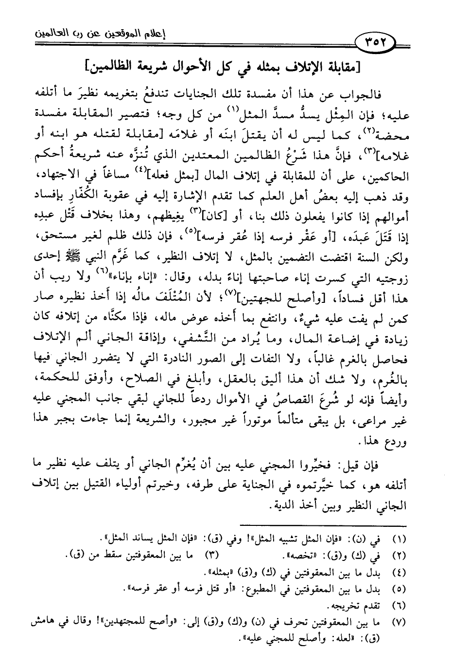 (٧) ما بين المعقوفتين تحرف في (ن) و (ك) و (ق) إلى: "وأصح للمجتهدين"! وقال في هامش (ق): "لعله: وأصلح للمجني عليه".