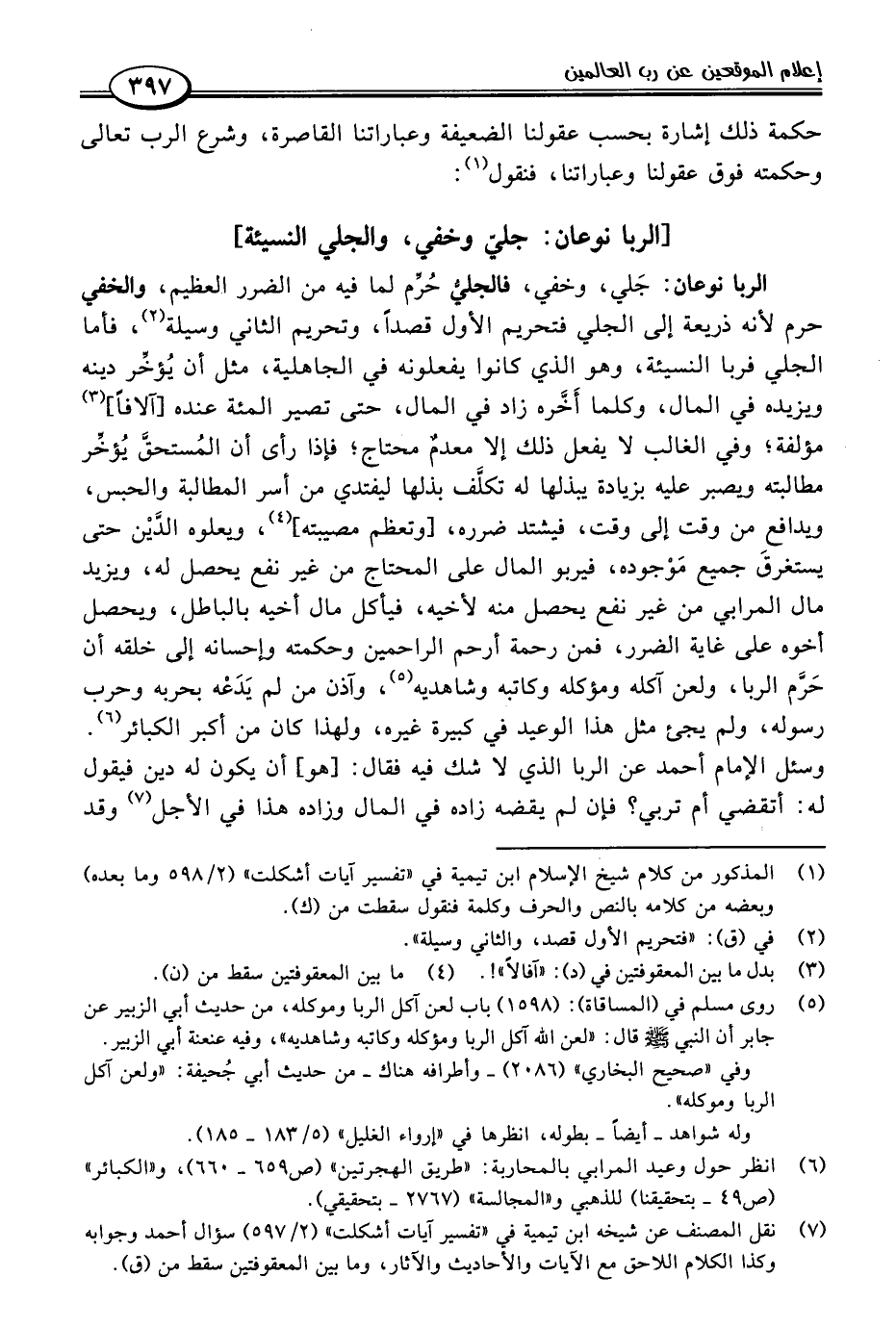 (٦) انظر حول وعيد المرابي بالمحاربة: "طريق الهجرتين" (ص ٦٥٩ - ٦٦٠)، و"الكبائر" (ص ٤٩ - بتحقيقنا) للذهبي و"المجالسة" (٢٧٦٧ - بتحقيقي).