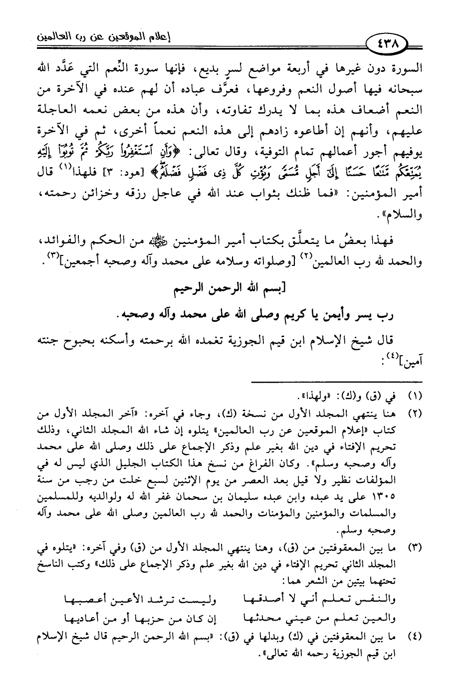 قال شيخ الإسلام ابن قيم الجوزية تغمده اللَّه برحمته وأسكنه بحبوح جنته آمين] (٤):