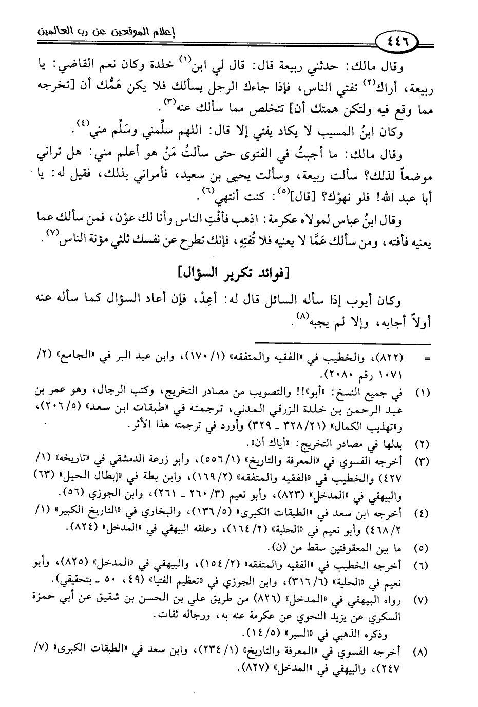 (٦) أخرجه الخطيب في "الفقيه والمتفقه" (٢/ ١٥٤)، والبيهقي في "المدخل" (٨٢٥)، وأبو نعيم في "الحلية" (٦/ ٣١٦)، وابن الجوزي في "تعظيم الفتيا" (٤٩، ٥٠ - بتحقيقي).