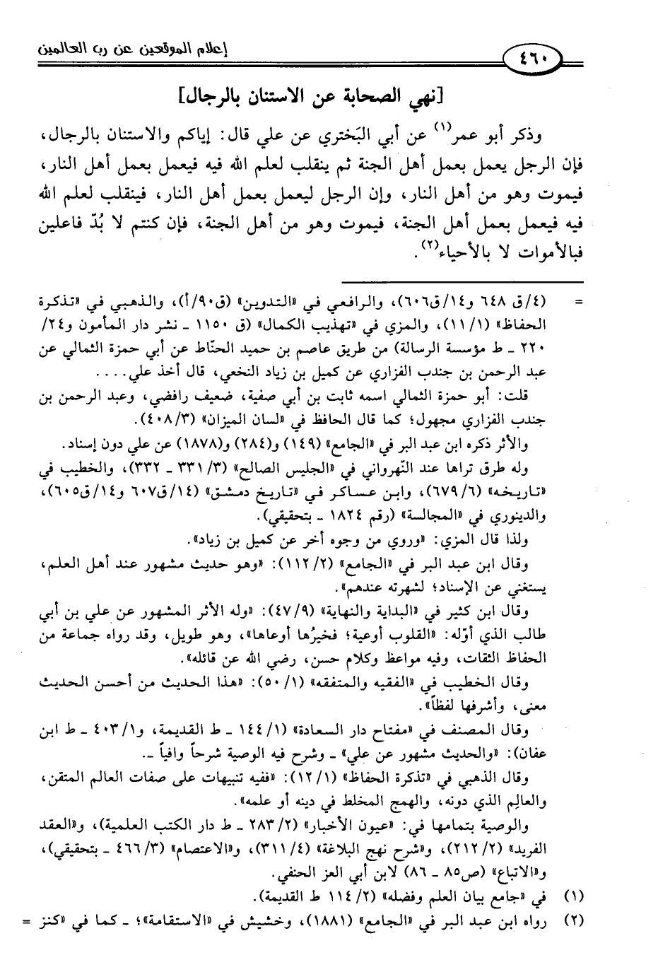 (٢) رواه ابن عبد البر في "الجامع" (١٨٨١)، وخشيش في "الاستقامة"؛ -كما في "كنز =