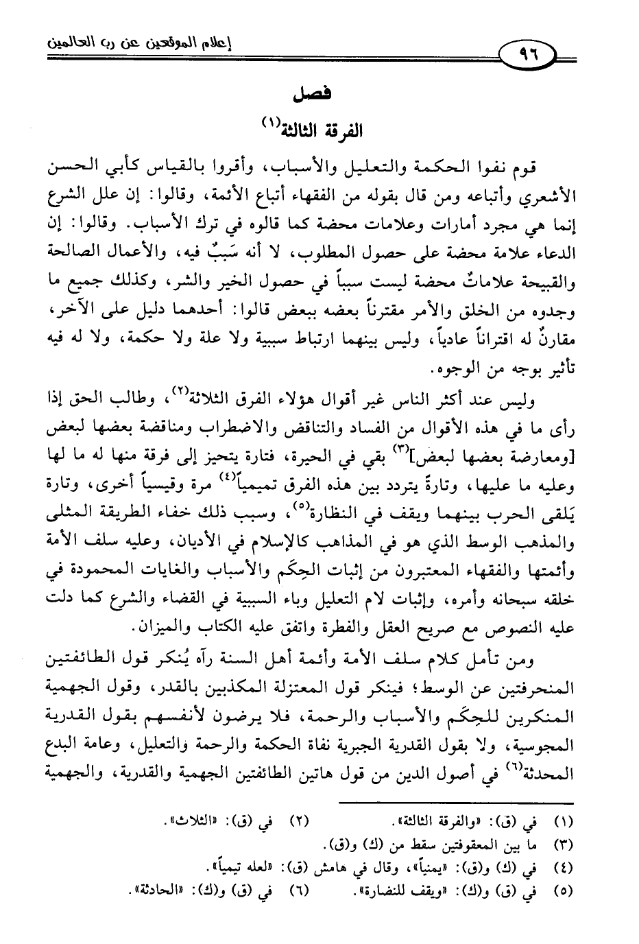 وليس عند أكثر الناس غير أقوال هؤلاء الفرق الثلاثة (٢)، وطالب الحق إذا رأى ما في هذه الأقوال من الفساد والتناقض والاضطراب ومناقضة بعضها لبعض [ومعارضة بعضها لبعض] (٣) بقي في الحيرة، فتارة يتحيز إلى فرقة منها له ما لها وعليه ما عليها، وتارةً يتردد بين هذه الفرق تميميًا (٤) مرَّة وقيسيًا أخرى، وتارة يَلقى الحرب بينهما ويقف في النظارة (٥)، وسبب ذلك خفاء الطريقة المثلى والمذهب الوسط الذي هو في المذاهب كالإسلام في الأديان، وعليه سلف الأمة وأئمتها والفقهاء المعتبرون من إثبات الحِكَم والأسباب والغايات المحمودة في خلقه سبحانه وأمره، وإثبات لام التعليل وباء السببية في القضاء والشرع كما دلت عليه النصوص مع صريح العقل والفطرة واتفق عليه الكتاب والميزان.