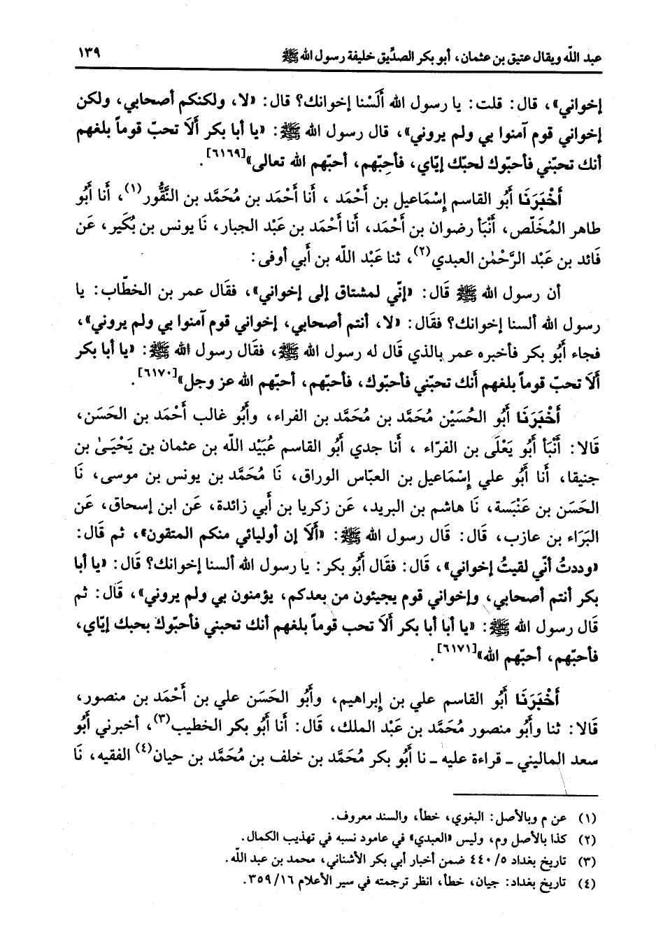 (3) تاريخ بغداد 5 / 440 ضمن أخبار أبي بكر الأشناني محمد بن عبد الله