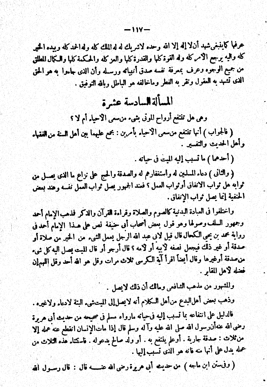 وَهِي هَل تنْتَفع أَرْوَاح الْمَوْتَى بِشَيْء من سعى الْأَحْيَاء أم لَا