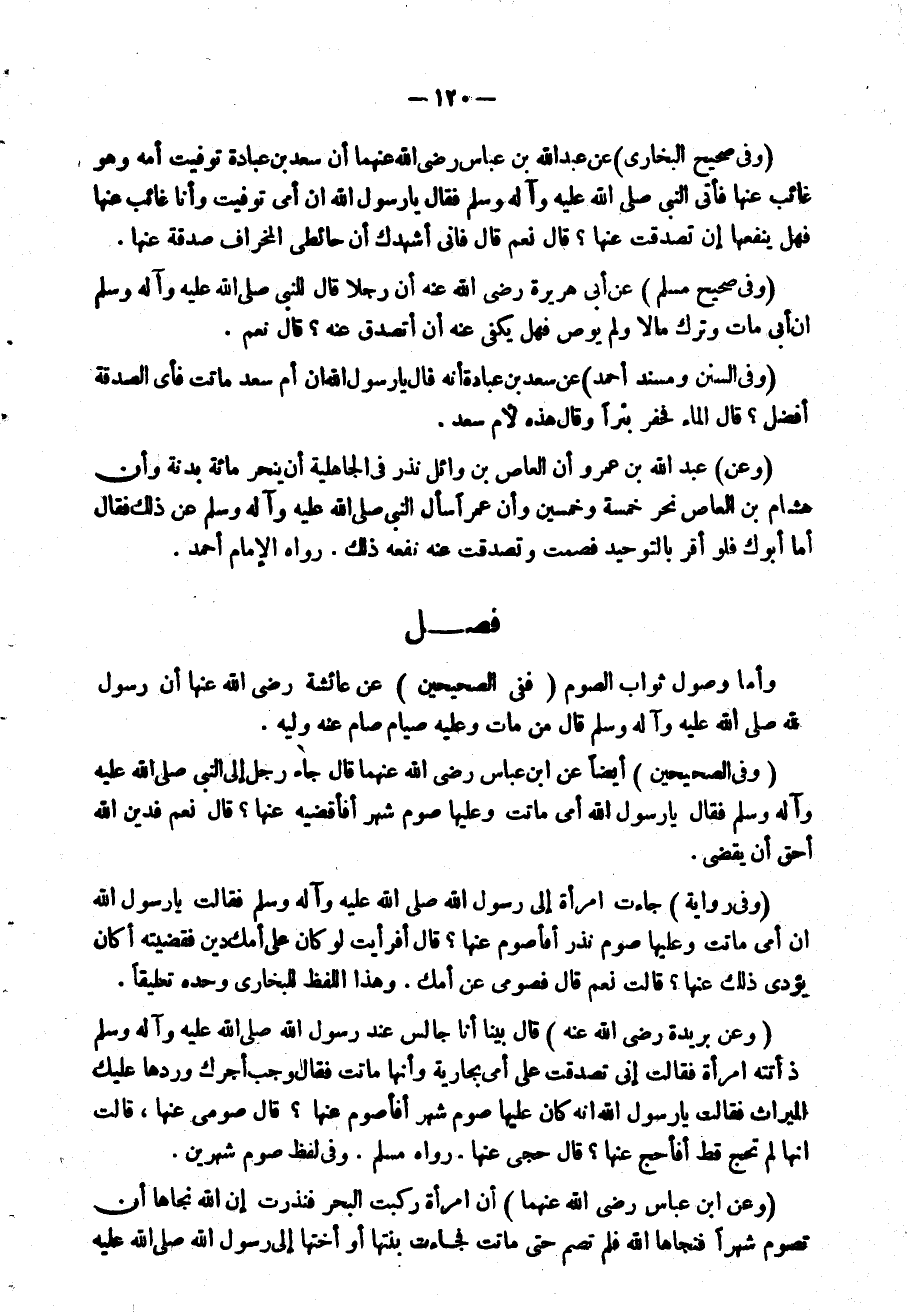 فصل وَأما وُصُول ثَوَاب الصَّوْم فَفِي الصَّحِيحَيْنِ عَن عَائِشَة رضى الله عَنْهَا أَن