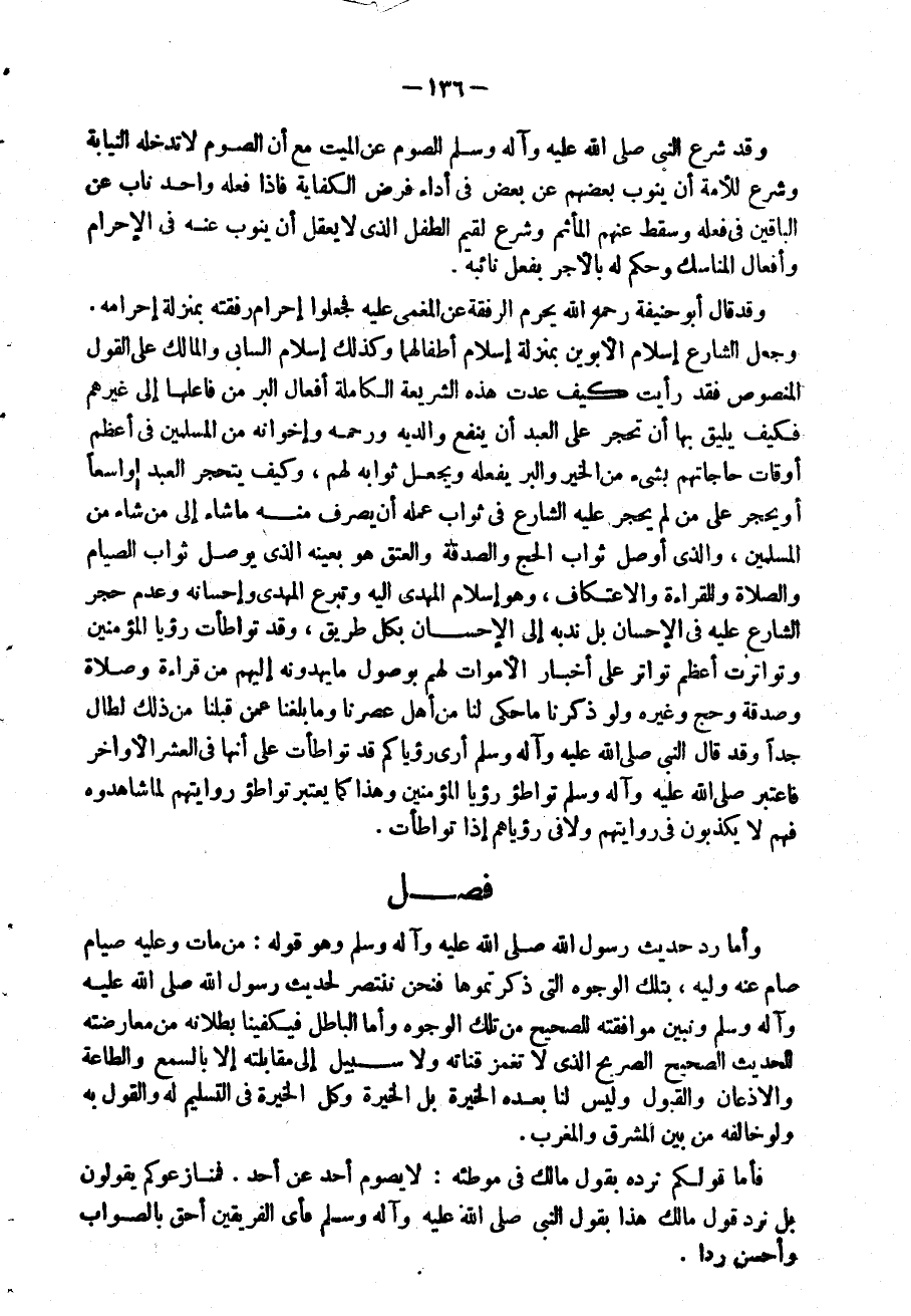 فصل وَأما رد حَدِيث رَسُول الله وَهُوَ قَوْله من مَاتَ وَعَلِيهِ صِيَام