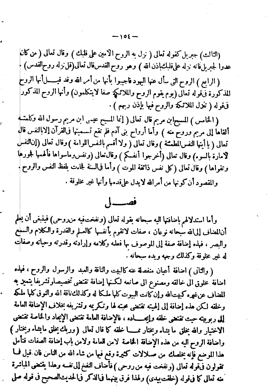 فصل وَأما استدلالهم بإضافتها إِلَيْهِ سُبْحَانَهُ بقوله تَعَالَى