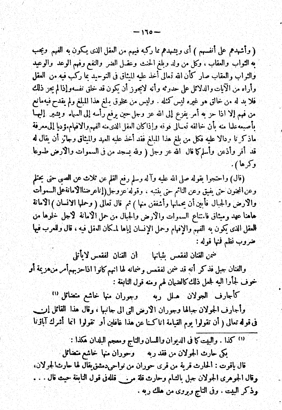 وأرجاف الجولان جبالها وجوران الأَرْض الَّتِي إِلَى جَانبهَا وَقَالَ هَذَا الْقَائِل إِن فِي قَوْله تَعَالَى {أَن تَقولُوا يَوْم الْقِيَامَة إِنَّا كُنَّا عَن هَذَا غافلين أَو تَقولُوا إِنَّمَا أشرك آبَاؤُنَا}