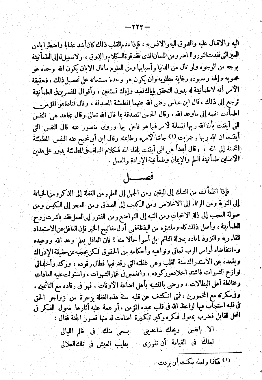 فصل فَإِذا اطمأنت من الشَّك إِلَى الْيَقِين وَمن الْجَهْل إِلَى الْعلم وَمن الْغَفْلَة