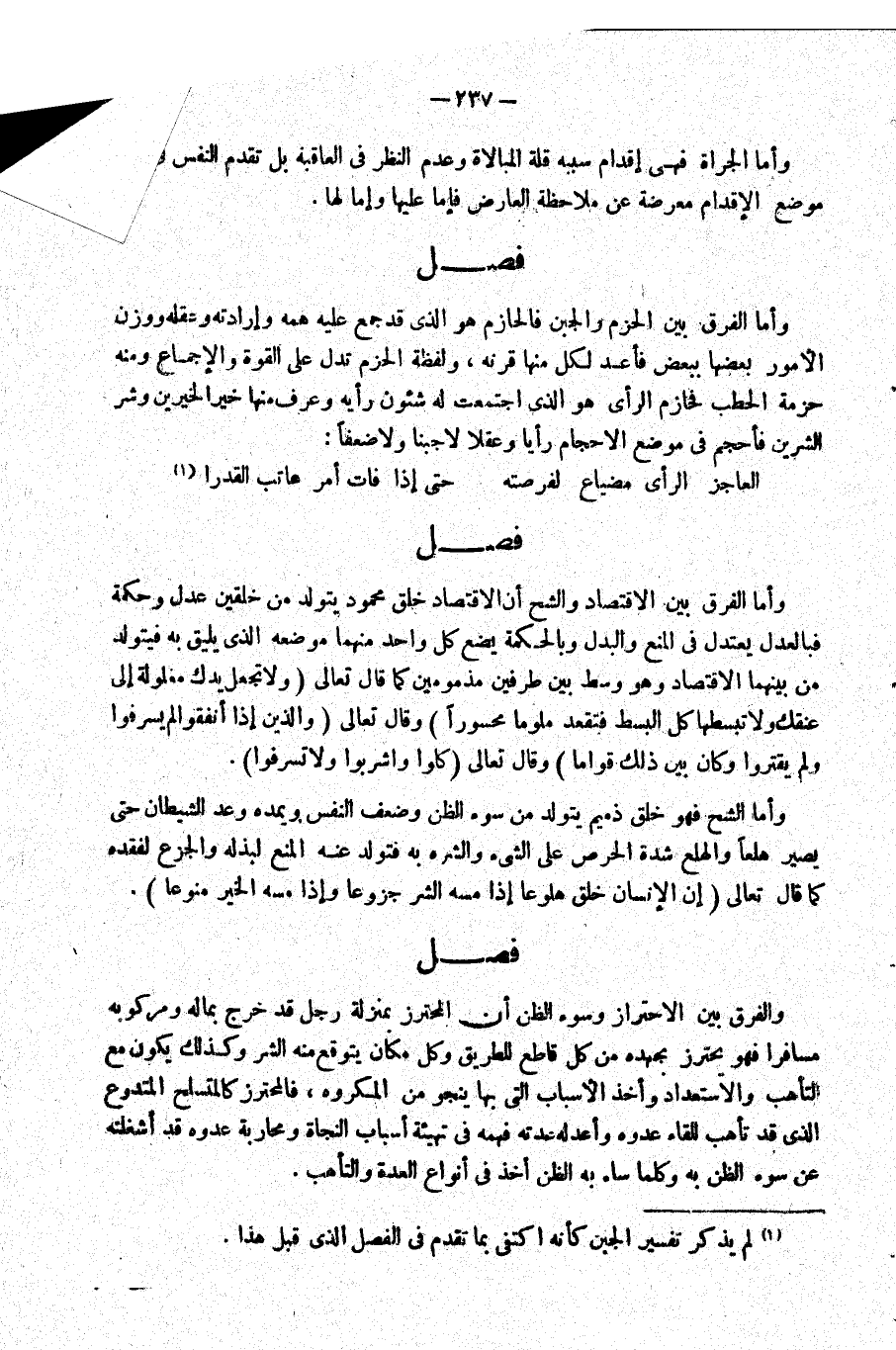 فصل وَأما الْفرق بَين الاقتصاد وَالشح أَن الاقتصاد خلق مَحْمُود يتَوَلَّد من