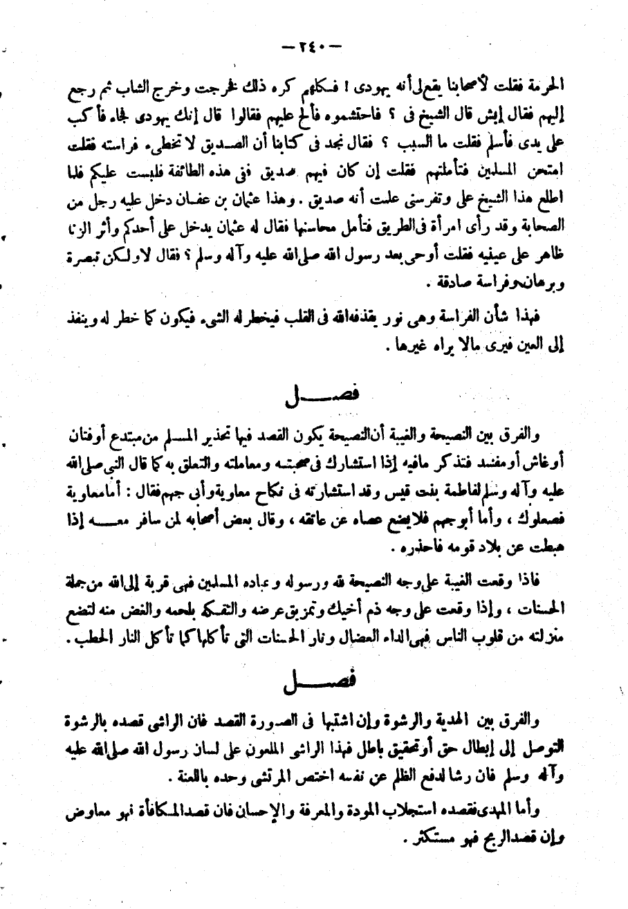 فصل وَالْفرق بَين النَّصِيحَة والغيبة أَن النَّصِيحَة يكون الْقَصْد فِيهَا تحذير