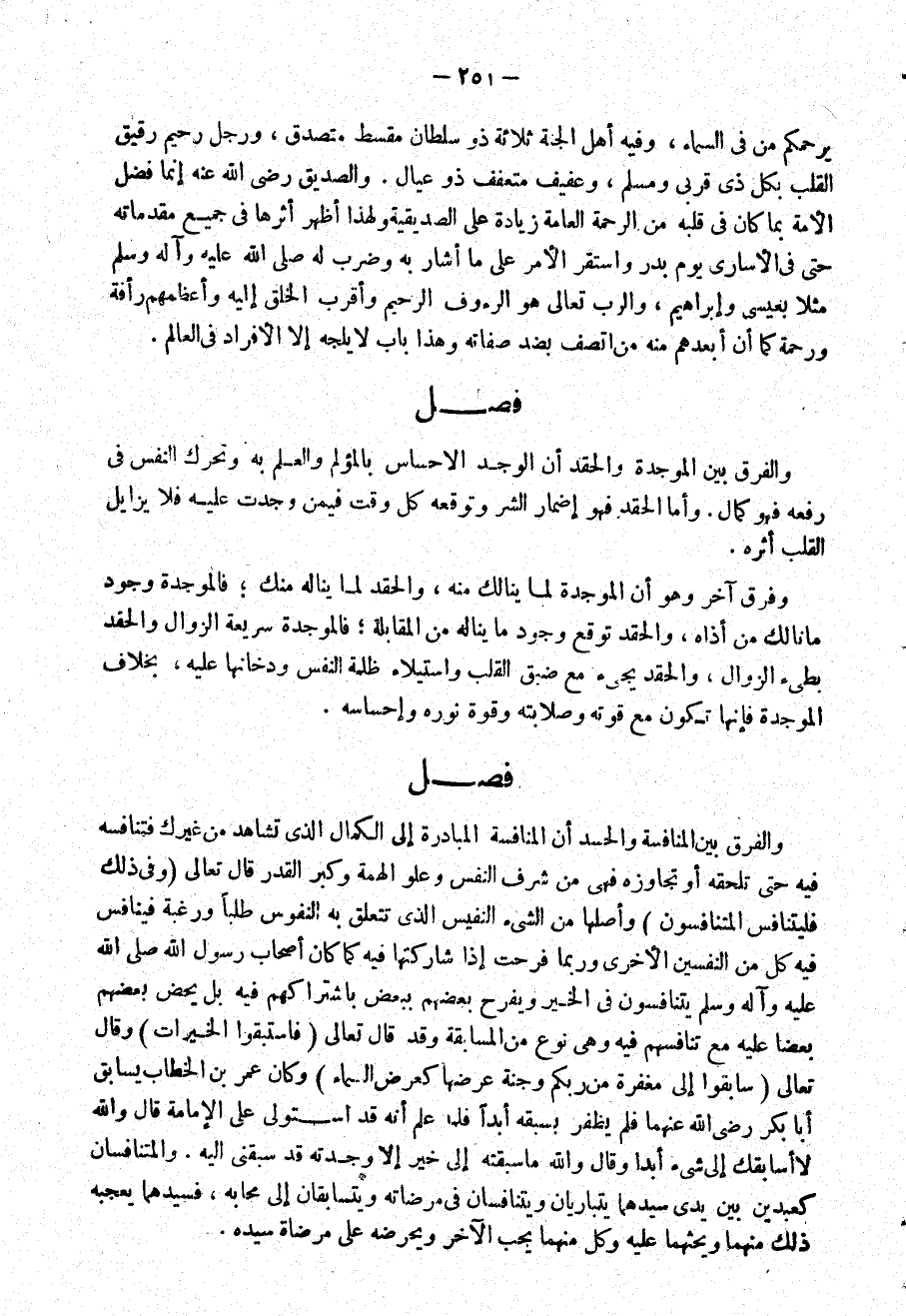 فصل وَالْفرق بَين المنافسة والحسد أَن المنافسة الْمُبَادرَة إِلَى الْكَمَال الَّذِي
