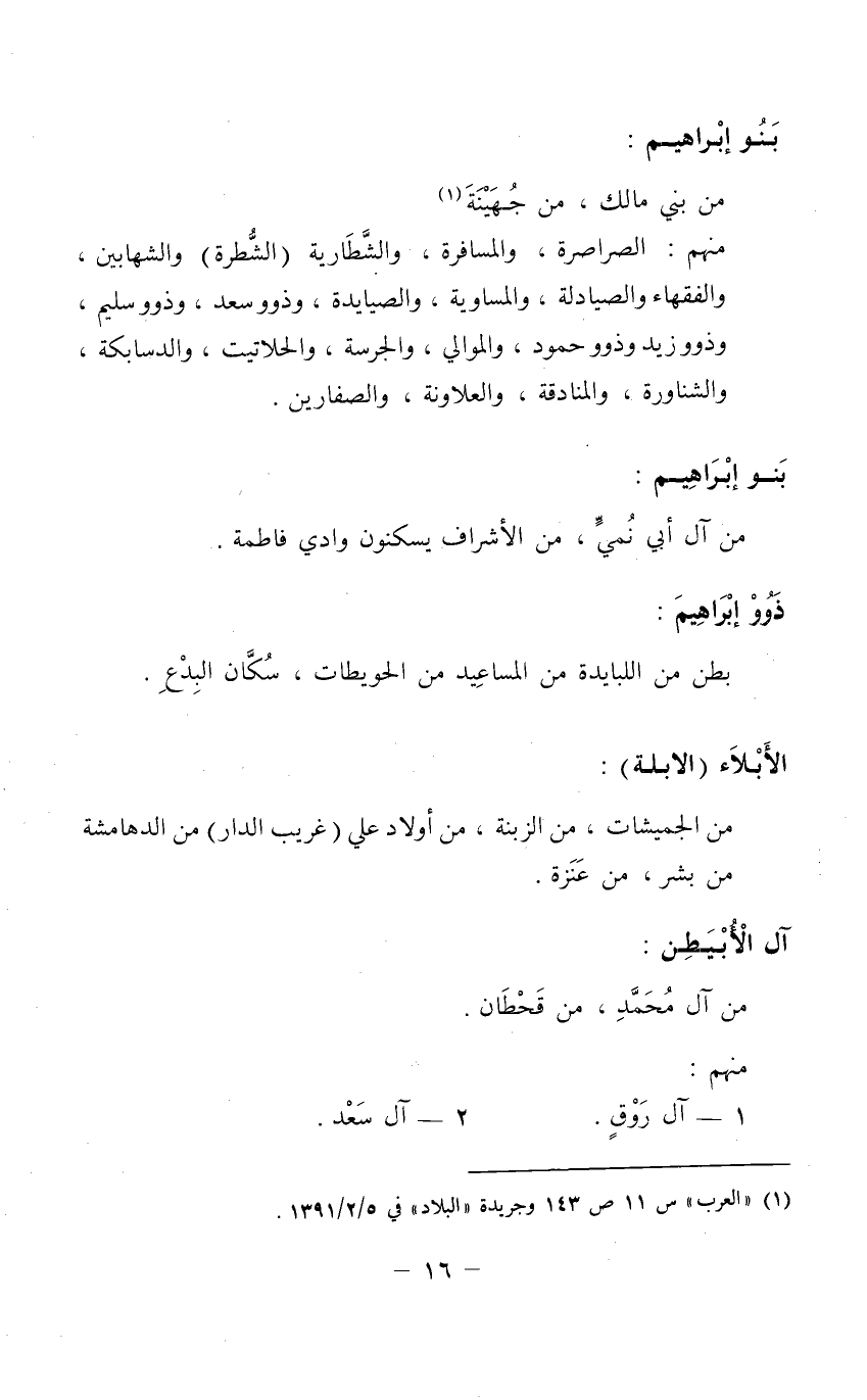 بَنُو إبْرَاهِيم: من آل أبي نُميٍّ، من الأشراف يسكنون وادي فاطمة.