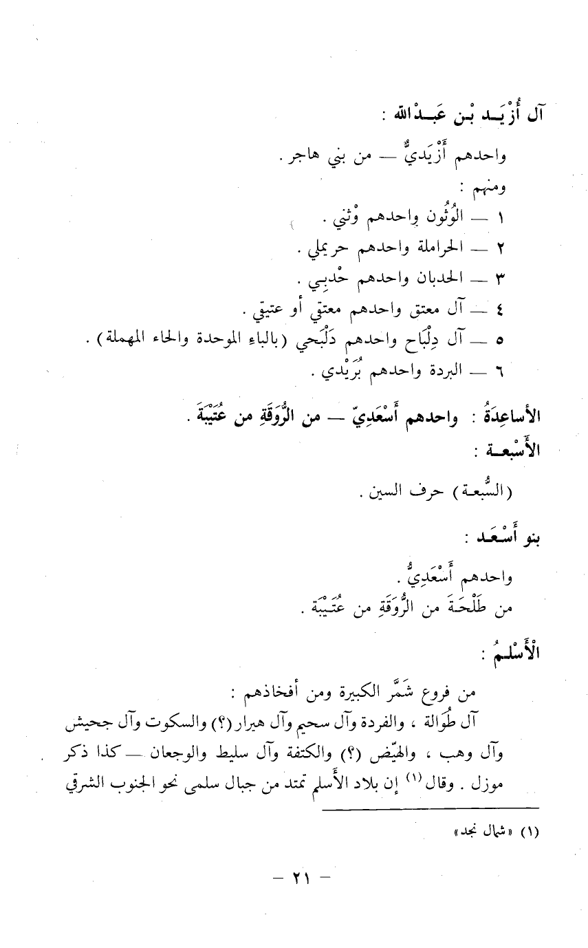 آل أُزْيَد بْن عَبدْ الله: واحدهم أزْيَديَّ من بني هاجر.