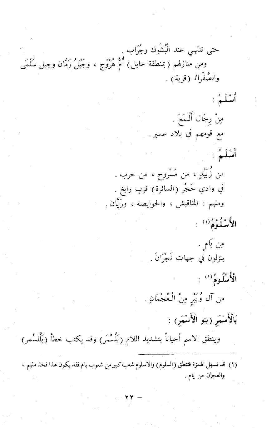 بَالأَسْمَرِ " بَنُو الأَسْمَرِ ": وينطق الاسم أحياناً بتشديد اللام " بَلَّسْمَر " وقد يكتب خطأ " بلَّلسمر "