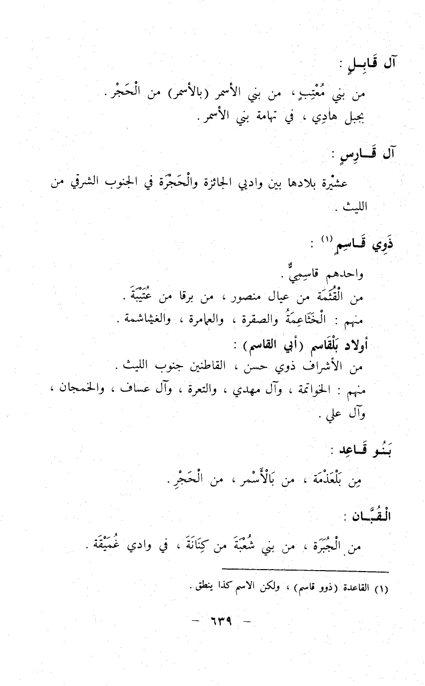 ومنهم: 1 - آل علي 2 - آل عبد الله 3 - آل حَسَن آل فُهَيْد: من المُخَضَّبَةِ، من بني هاجر.