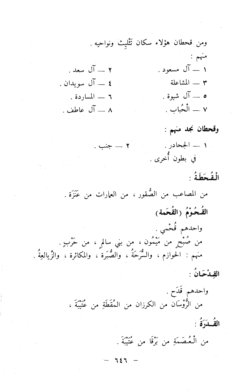 ومنهم: 1 - آل عُجيَّان 2 - آل جابر 3 - آل مضحي بن رَشِيْد 4 - آل حامد القَبَلُ: من بني شِهْرِ الشام، من الحَجْر بالسَراة.