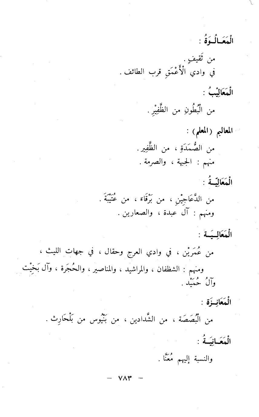 ومنهم: " أ " المحاميد " محمادي " ومنهم المطيعي، والمذاكير " مذكوري ". والمهابدة " مهبيدي " والرثعة رُثيعي ".