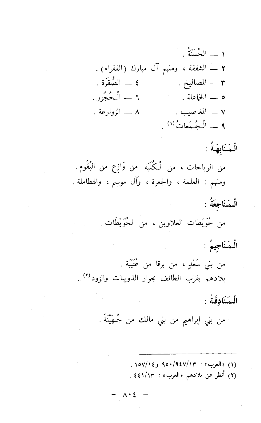 وأُم الحجل، وأُم الجواعر وأُم القِلات، والأيسري، وبدائع رغبا والبديعة والبقرة - ويشاركهم فيها النفعة - وبهجة وتنضبة والجربوعي، وجروح وحجول والحرجي والحفيرة، والحومية وحيزان وحبيشان " وادي " ودبيسة وذريع، ويشاركهم فيه النفعة.