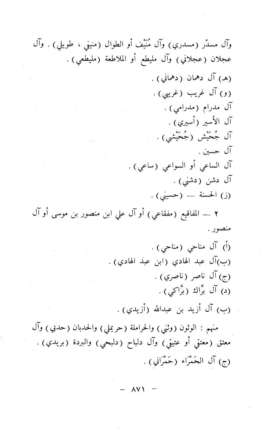 ومن الدلامين " دلماني "، الهملان " هملاني " والنخشة " نخيش " وبنو راضي.