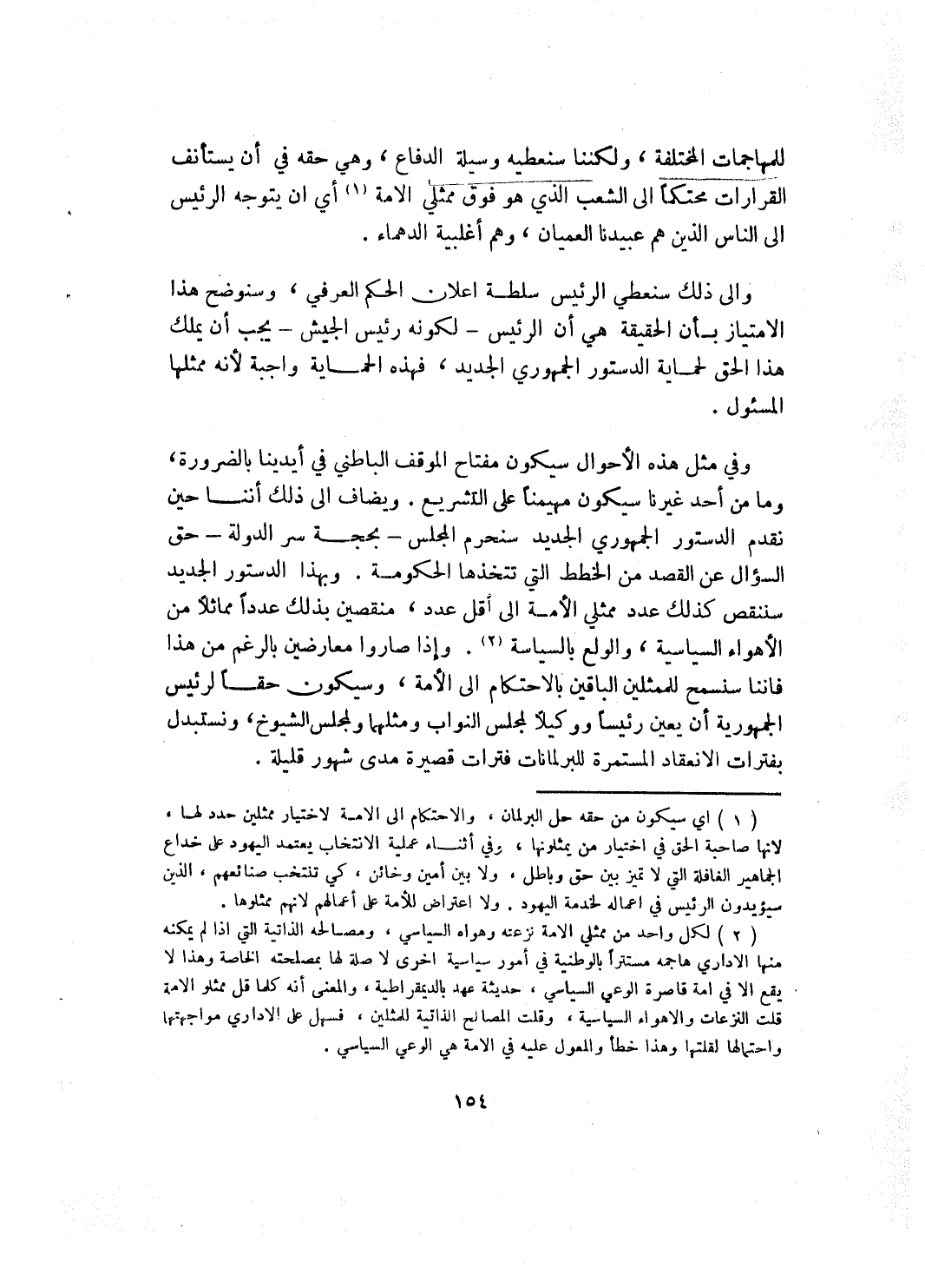 (¬1) أي سيكون من حقه حل البرلمان، والاحتكام إلى الأمة لاختيار ممثلين حدد لها، لانها صاحبة الحق وفي اختيار من يمثلونها، وفي أثناء عملية الانتخاب يعتمد اليهود على خداع الجماهير الغافلة التي لا تميز بين حق وباطل، ولا بين أمين وخائن، كي تنتخب صنائعهم، الذين سيؤيدون الرئيس في اعماله لخدمة اليهود. ولا اعتراض للأمة على أعمالهم لانهم ممثلوها.