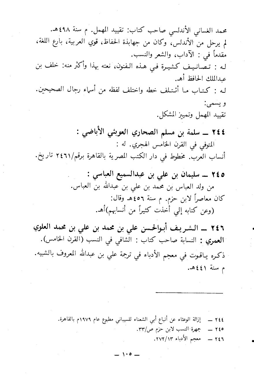 أنساب العرب. مخطوط في دار الكتب المصرية بالقاهرة برقم2461 تاريخ.