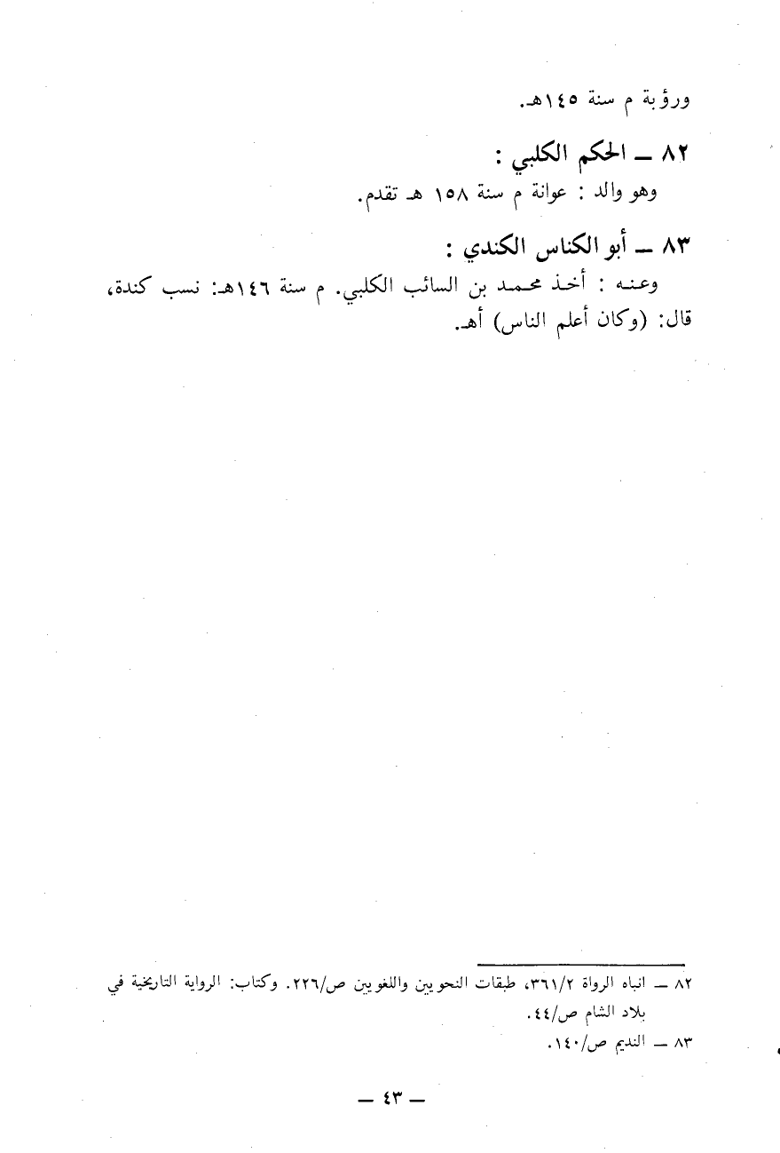 وعنه: أخذ محمد بن السائب الكلبي. م سنة 146 هـ: نسب كندة، قال: " وكان أعلم الناس " أه.