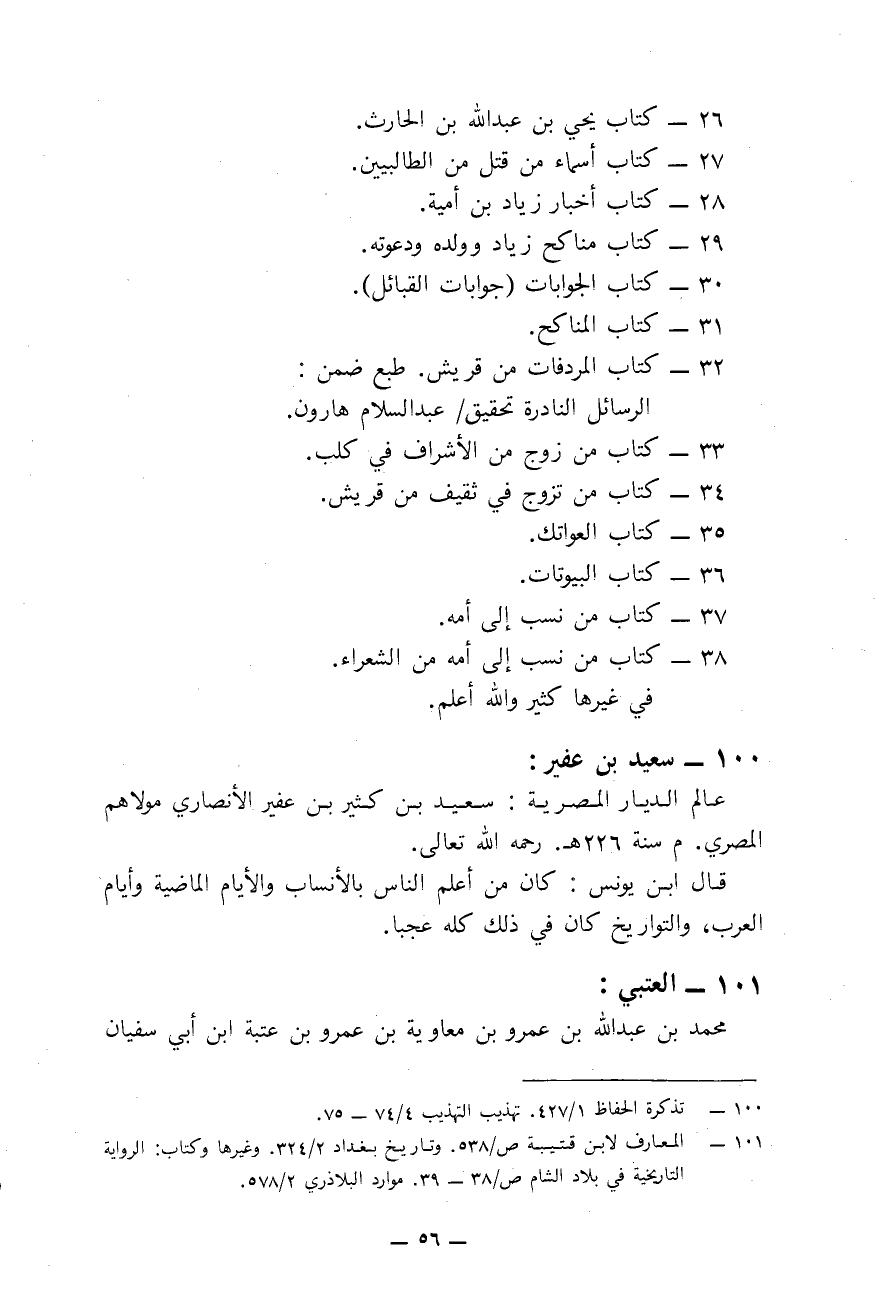 101 - العتبي محمد بن عبد الله بن عمرو بن معاوية بن عمرو بن عتبة ابن أبي سفيان