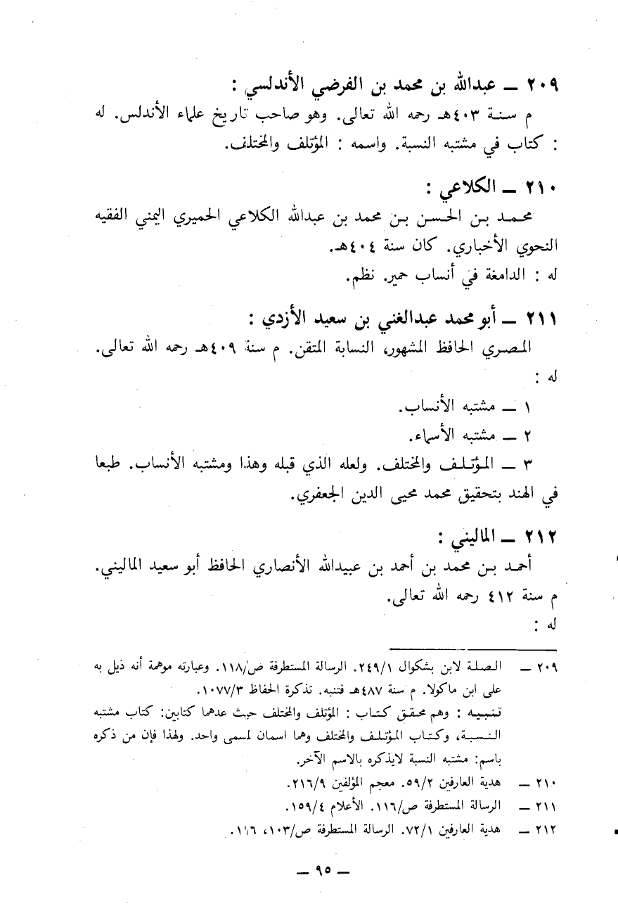م سنة 403 هـ رحمه الله تعالى. وهو صاحب تاريخ علماء الأندلس. له: كتاب في مشتبه النسبة. واسمه: المؤتلف والمختلف.