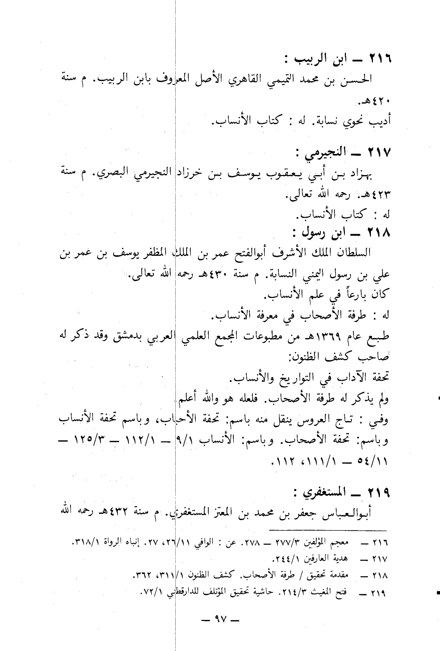 وفي: تاج العروس ينقل منه باسم: تحفة الأحباب، وباسم تحفة الآنساب وباسم: تحفة الأصحاب. وباسم: الأنساب 19 1112 3125 1154 1111، 112.