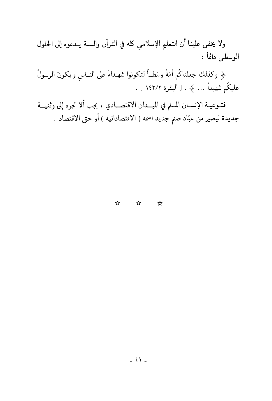 فتوعية الإنسان المسلم في الميدان الاقتصادي، يجب ألا تجره إلى وثنية جديدة ليصير من عبّاد صنم جديد اسمه (الاقتصادانية) أو حتى الاقتصاد.