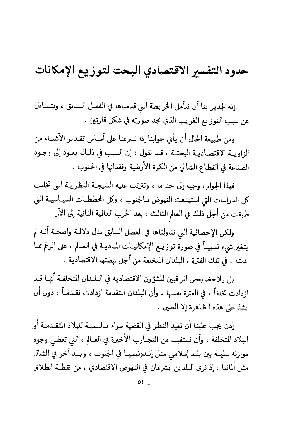 ولكن الإحصائية التي تناولناها في الفصل السابق تدل دلالة واضحة أنه لم يتغير شيء نسبياً في صورة توزيع الإمكانيات المادية في العالم، على الرغم مما بذلته، في تلك الفترة، البلدان المتخلفة من أجل نهضتها الاقتصادية.