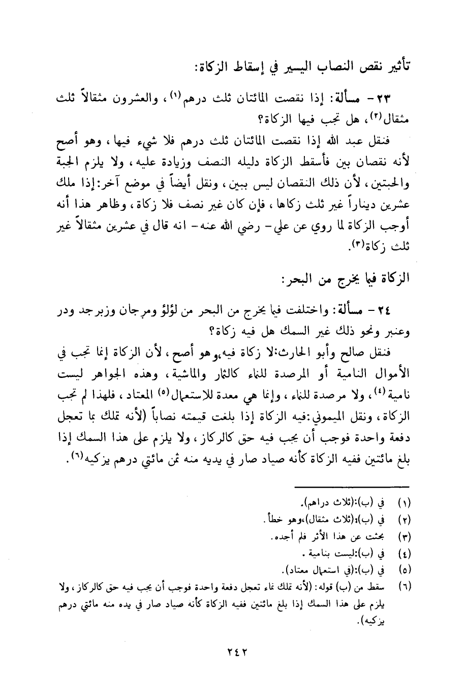 23 - مسألة: إذا نقصت المائتان ثلث دراهم، والعشرون مثقالاً ثلث مثقال، هل تجب فيها الزكاة؟